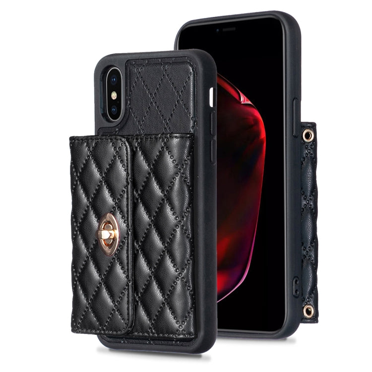 Caja de Teléfono de Cuero Rombal para iPhone Xs Max con Hebilla de Metal Horizontal (Negro)