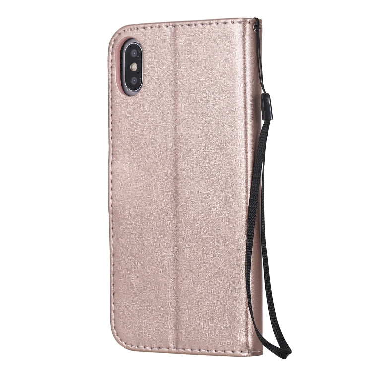 Funda de Cuero iPhone Xs Max Cat Bee Patrón En Relieve Tapa Horizontal Soporte Ranuras Tarjetas Billetera (Oro Rosa)