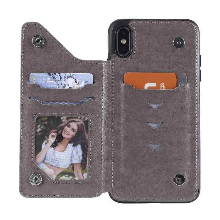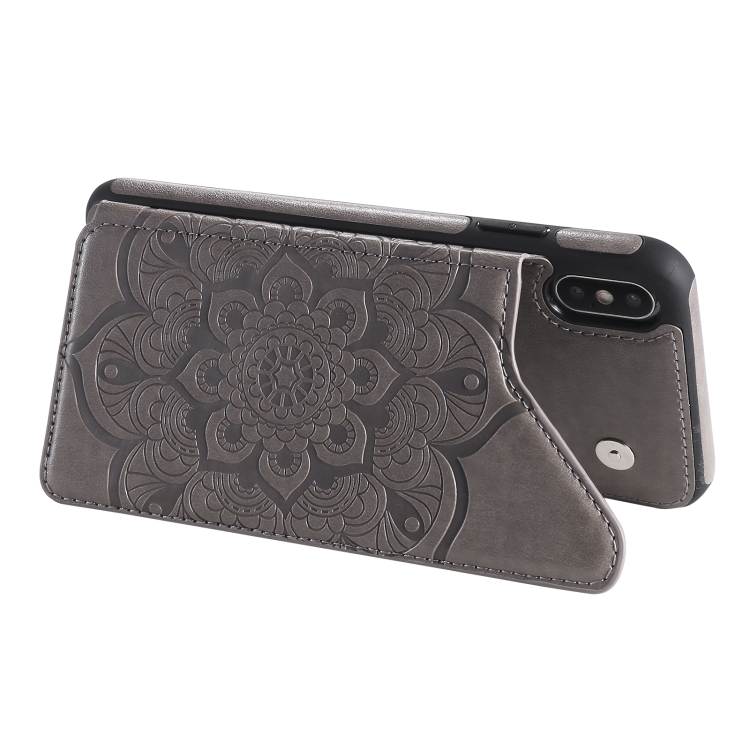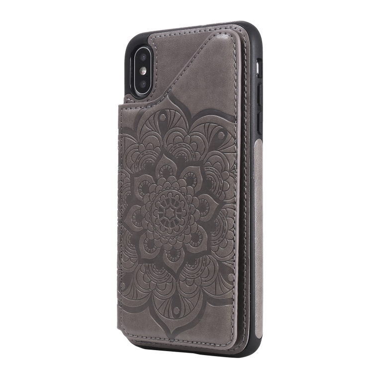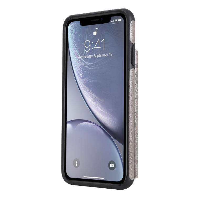 Estuche Protector para iPhone Xs Max Flower Embossing Pattern a Prueba de Golpes con Soporte y Ranuras para Tarjetas y Marco de Fotos (Gris)