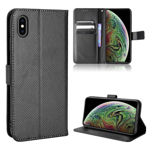 Funda para iPhone Xs Max Cuero Textura de Diamante (Negro)