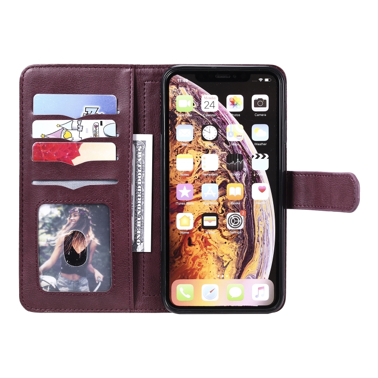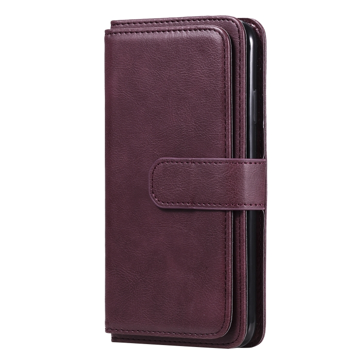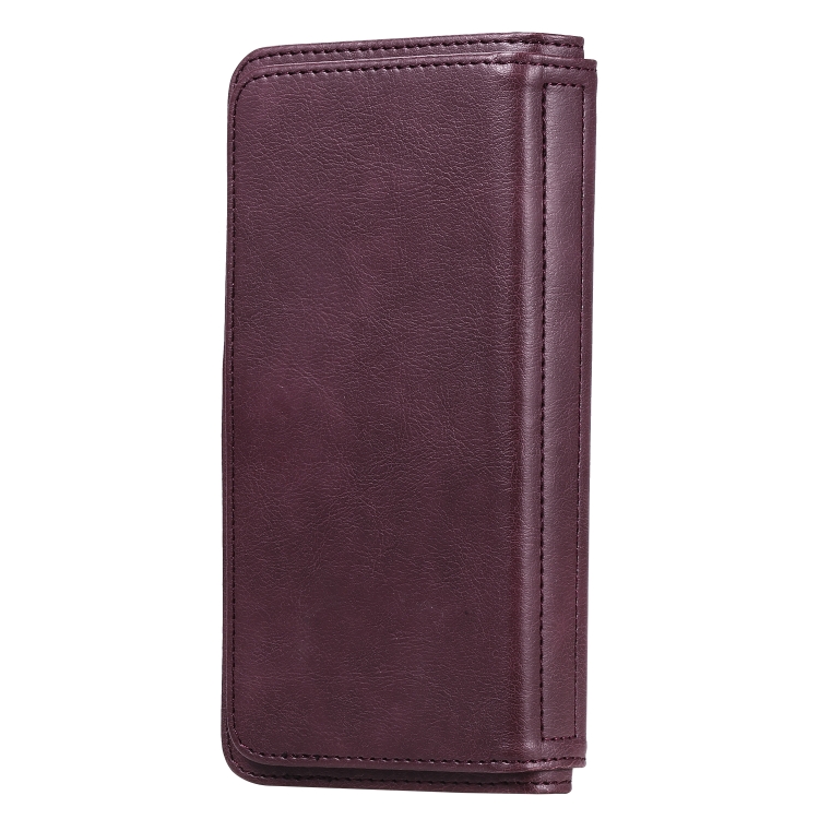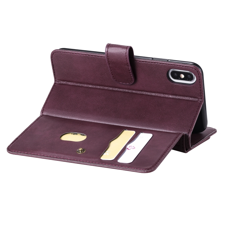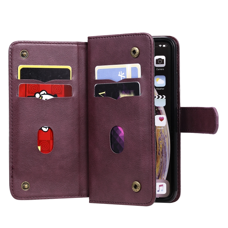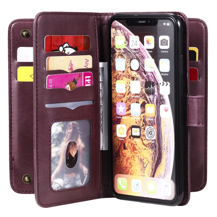 Funda para iPhone Xs Max Hebilla de Cobre Magnética Multifuncional Tapa Horizontal 10 Ranuras (Rojo Vino)