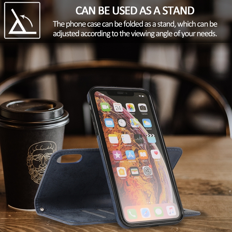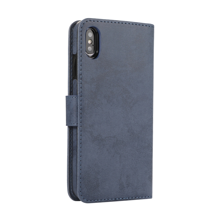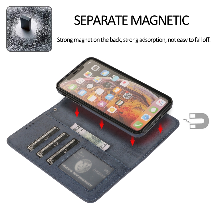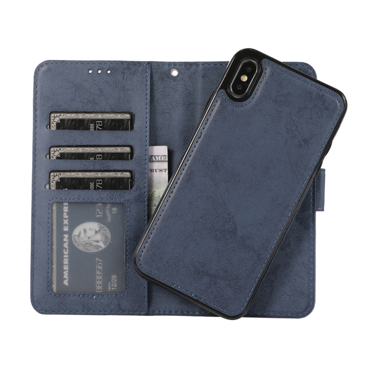 Funda para iPhone Xs Max Klt888-2 2 en 1 Cuero TPU + PU con Tapa Horizontal Magnética Desmontable Soporte Ranuras Tarjetas Marco Fotos Billetera (Azul Oscuro)