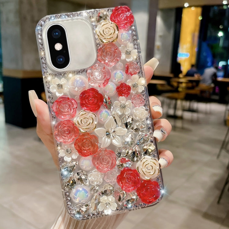 Estuche para Teléfono iPhone Xs Max Rose Pearl Diamond para PC con Juego de Mano (Rojo)