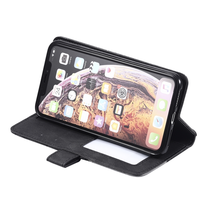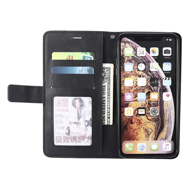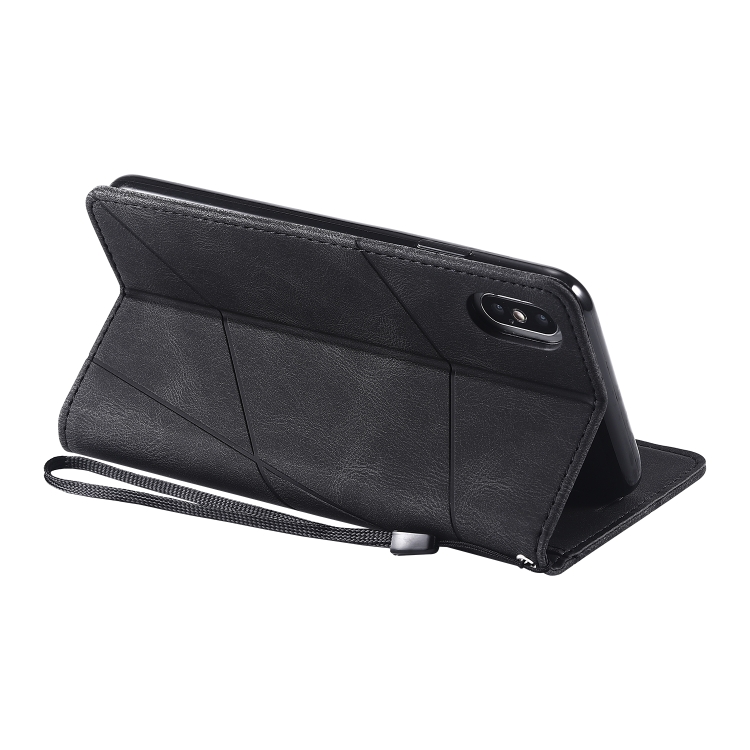 Funda para iPhone Xs Max Skin Feel Splicing de Cuero con Tapa Horizontal, Soporte, Ranuras para Tarjetas, Billetera y Marco de Fotos (Negro)