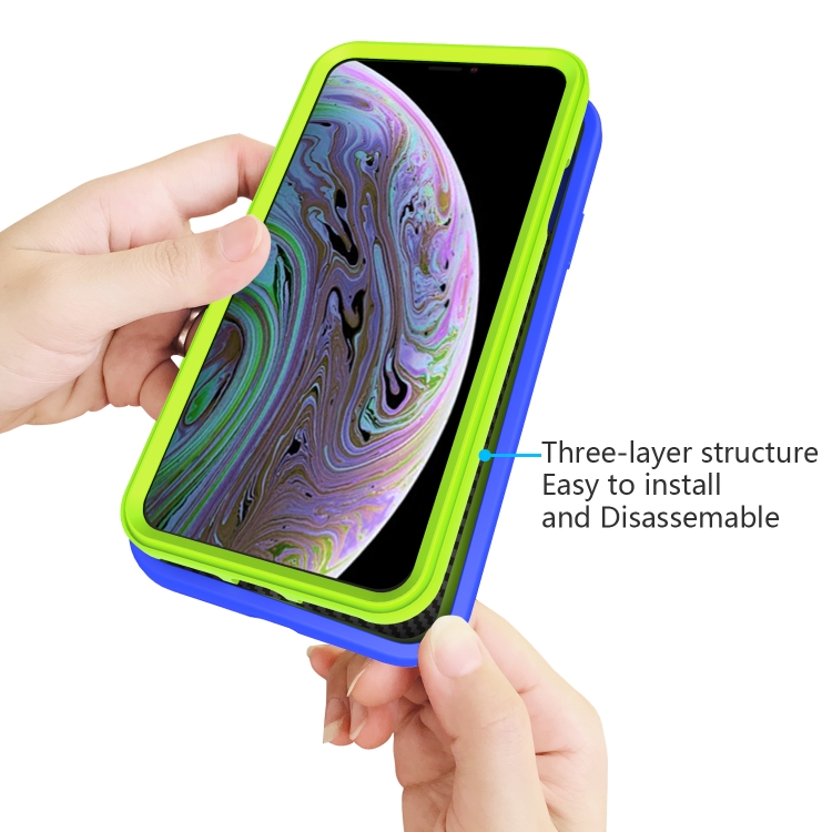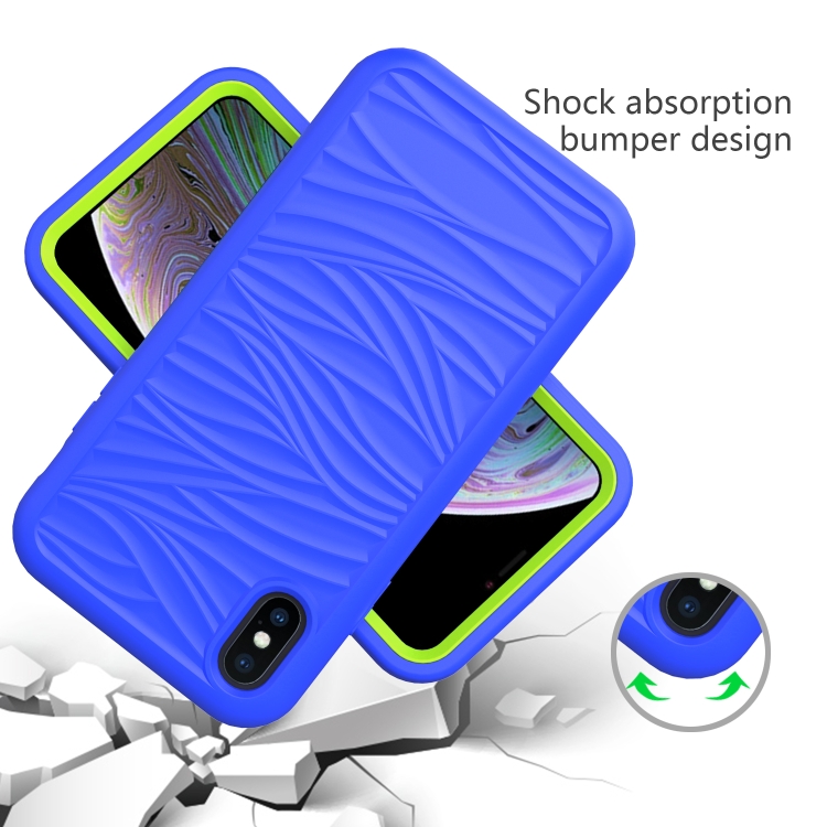 Funda Protectora 3 en 1 para iPhone Xs Max Silicona y PC a Prueba de Golpes (Azul + Olivina)