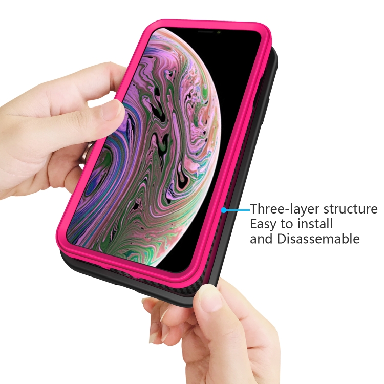 Funda protectora para iPhone Xs Max Wave Pattern 3 en 1 silicona y PC a prueba de golpes (Negro + Rosa Fuerte)