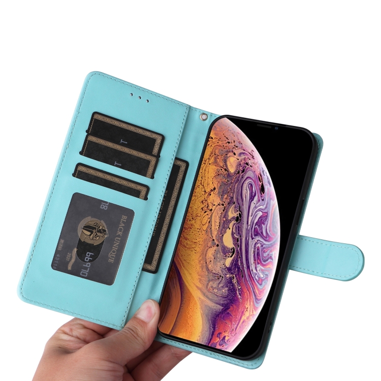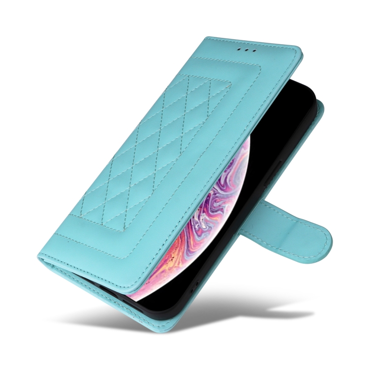 Funda de teléfono para iPhone Xs / X con tapa de cuero Diamond Lattice (Verde Menta)