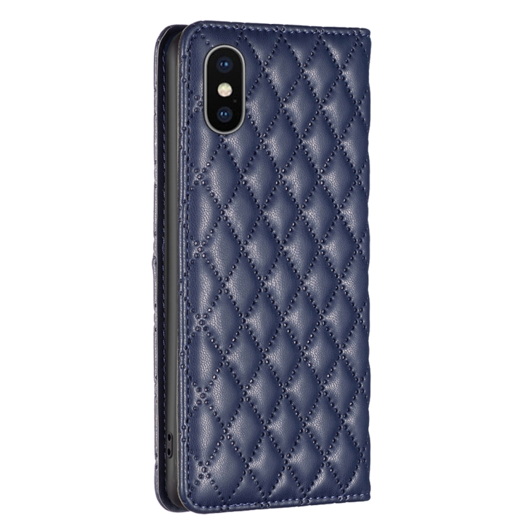 Funda de Teléfono para iPhone Xs / X con Tapa de Cuero Magnético Diamond Lattice (Azul)