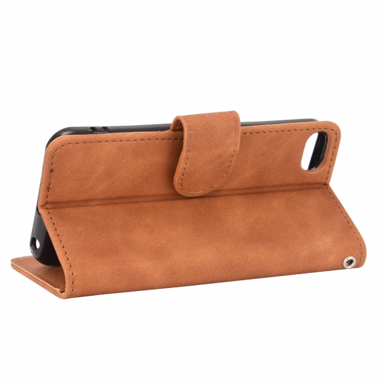 Funda para iPod Touch 6 y 5 Piel Sintética Soporte Ranuras Billetera (Marrón)
