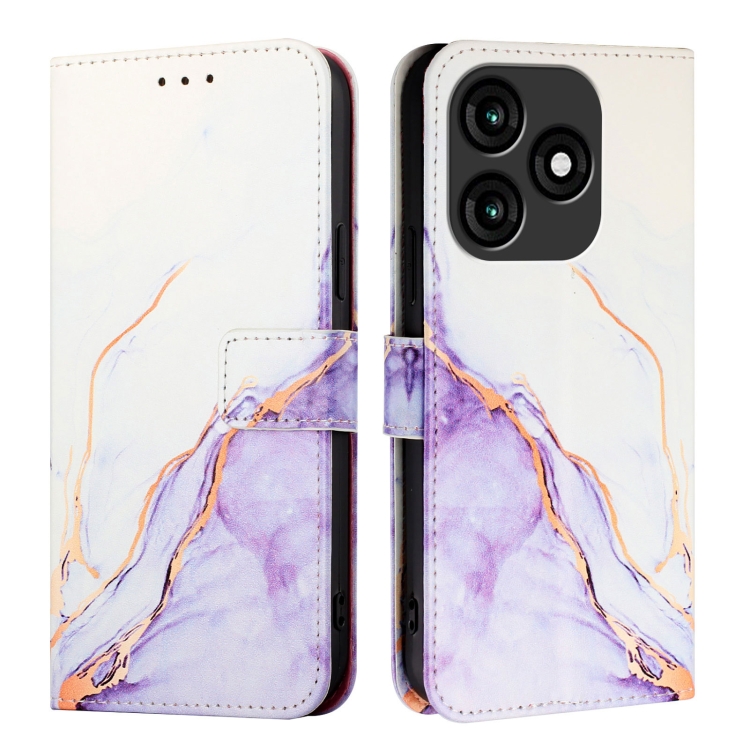 Funda para Teléfono Itel A70 Pt003 de Cuero con Tapa y Patrón de Mármol (Blanco y Morado)