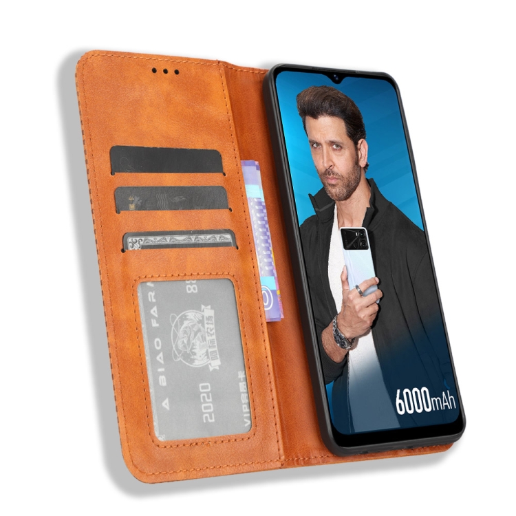 Funda de Cuero para Itel P40 con Hebilla Magnética y Textura Retro (Marrón)
