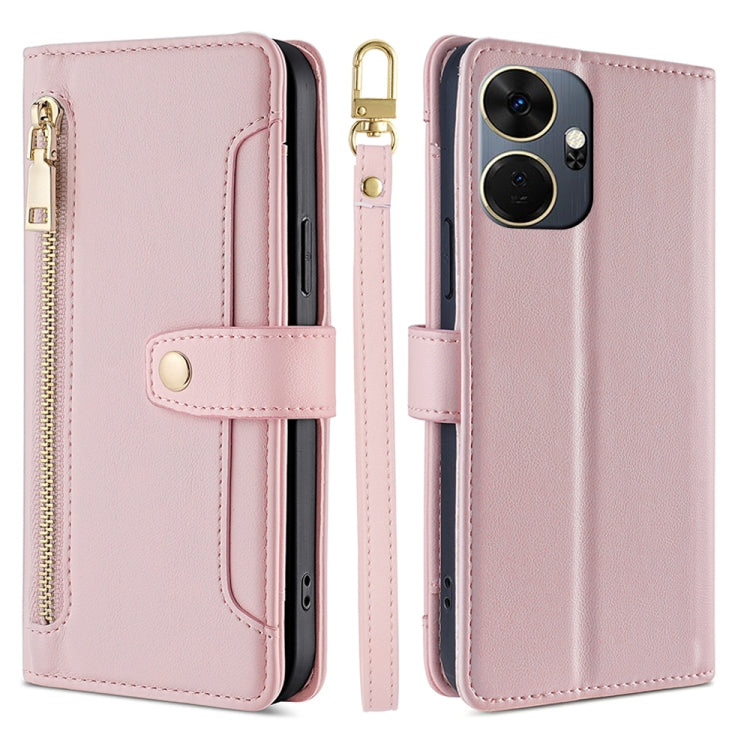 Estuche de Cuero para Itel P55 + 4G con Billetera, Cremallera y Textura de Oveja (Rosa)