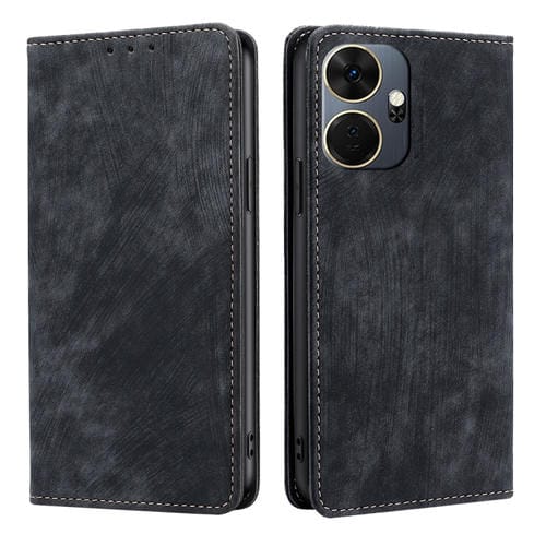 Funda de Cuero Magnética para Itel P55 + 4G con Rfid y Cepillo Antirrobo (Negro)