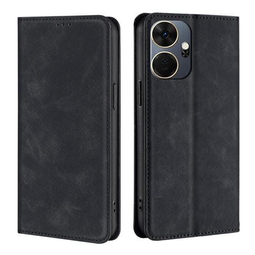 Funda de Cuero Magnética para Itel P55 + 4G Skin Feel (Negro)