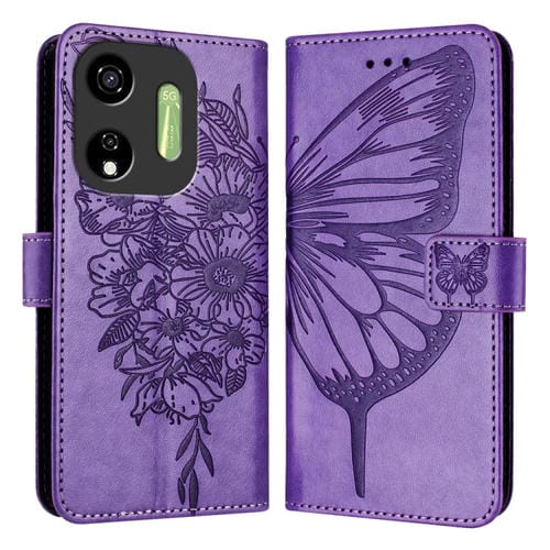 Funda para Itel P55 5G de Cuero con Mariposa en Relieve (Púrpura Claro)
