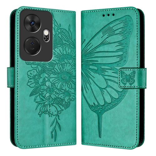 Funda de Cuero para Itel P55 con Mariposa en Relieve (Verde)