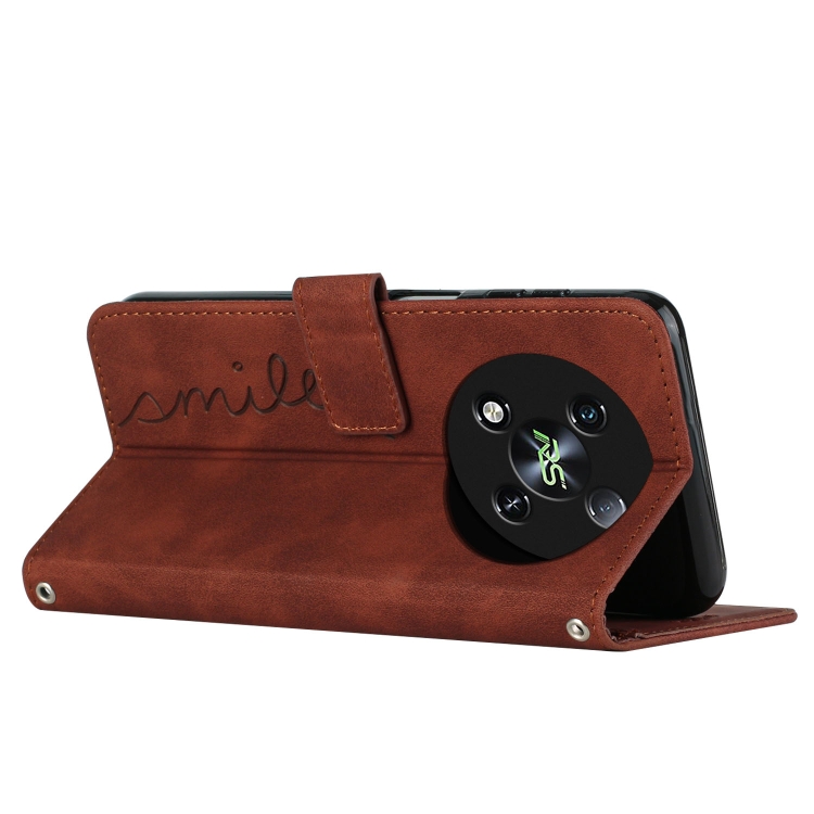 Funda de Cuero para Itel Rs4 Skin Feel con Relieve y Cordón Largo (Marrón)