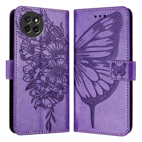 Funda para Teléfono Itel S23 de Cuero con Mariposa en Relieve (Púrpura Claro)