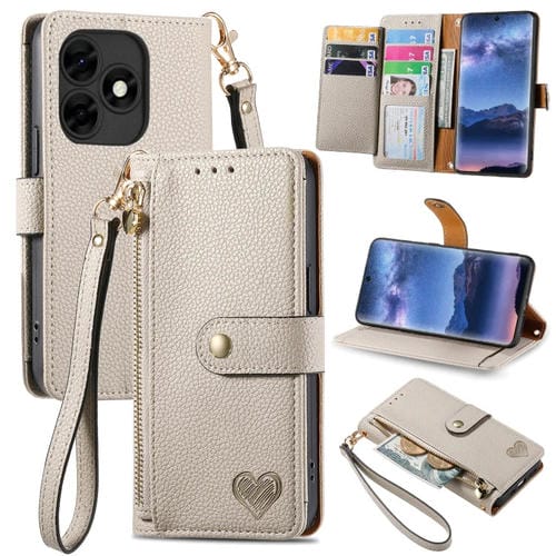 Funda de Cuero para Itel S23 con Love Zipper Lanyard para Teléfono (Gris)