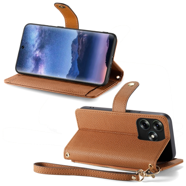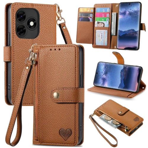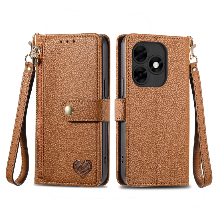 Funda de Cuero para Teléfono Itel S23 con Love Zipper Lanyard (Marrón)