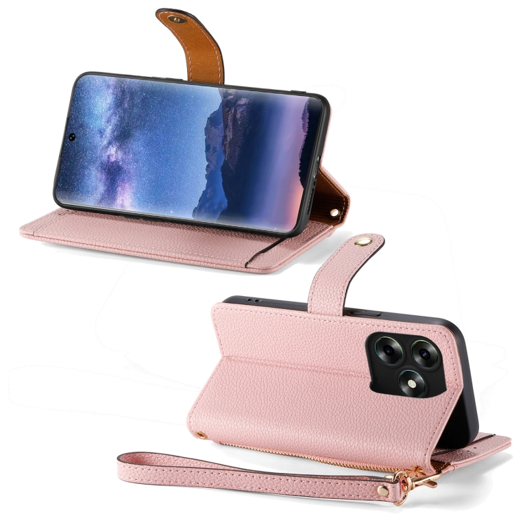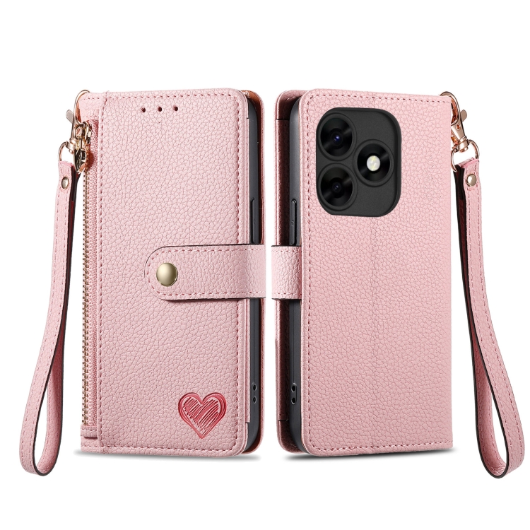 Funda de Cuero para Itel S23 con Love Zipper Lanyard para Teléfono (Rosa)