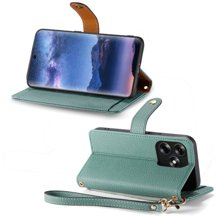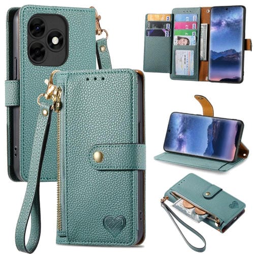 Funda de Cuero para Itel S23 con Love Zipper Lanyard para Teléfono (Verde)