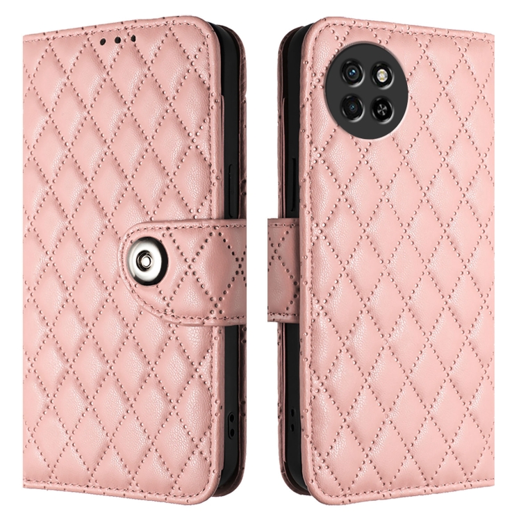 Funda para Teléfono Itel S23 S665L de Cuero con Tapa Textura Rómbica y Cordón (Rosa Coral)