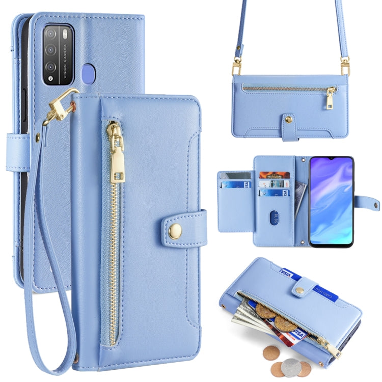 Estuche de Cuero para Itel Vision 1 Pro con Billetera, Cremallera y Textura de Oveja (Azul)