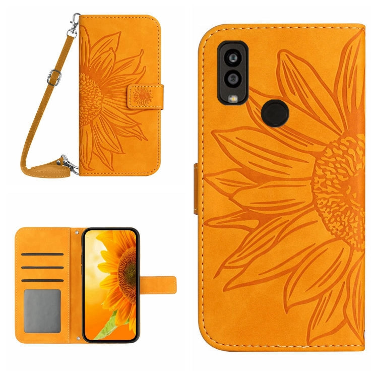 Funda Flip de Cuero Kyocera Android One S9 Skin Feel con Cordón y Diseño Sun Flower (Amarillo)