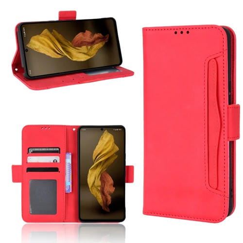 Funda de Cuero para Aquos R7 con Ranuras y Textura de Ternera (Rojo)