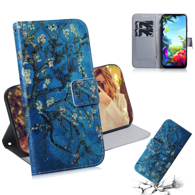 Estuche de Cuero Abatible Horizontal para LG K40S con Atracción Magnética, Soporte y Ranura para Tarjeta (Flor de Albaricoque)