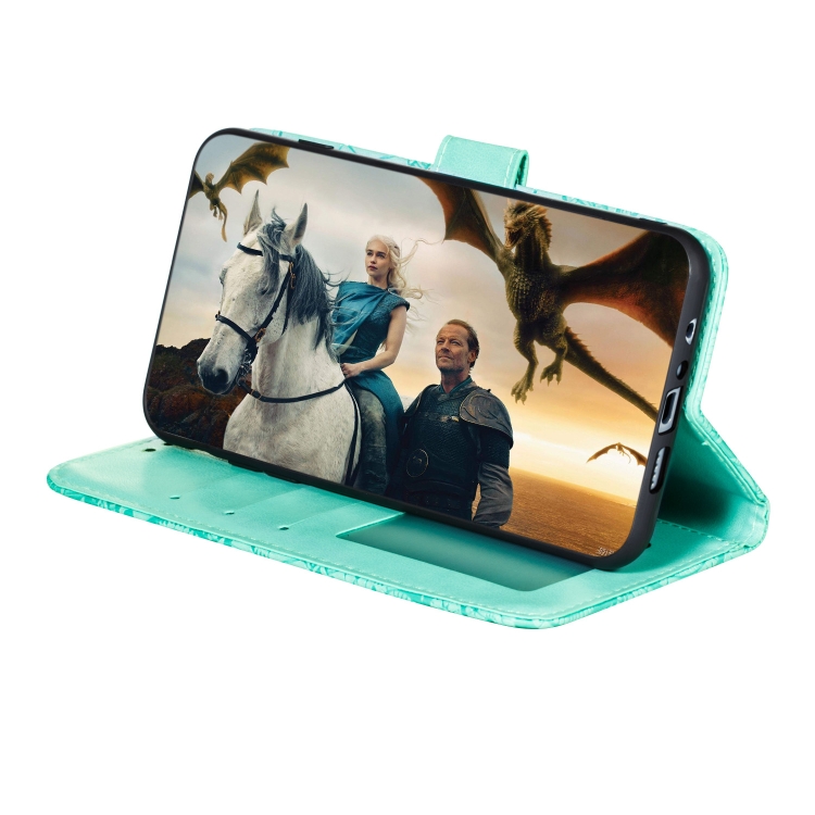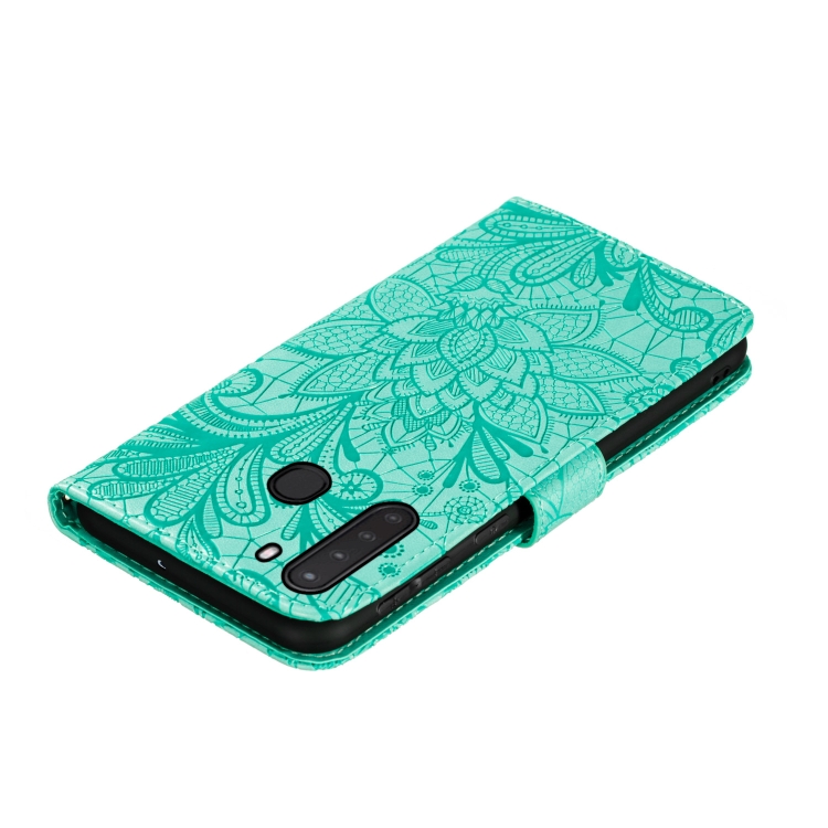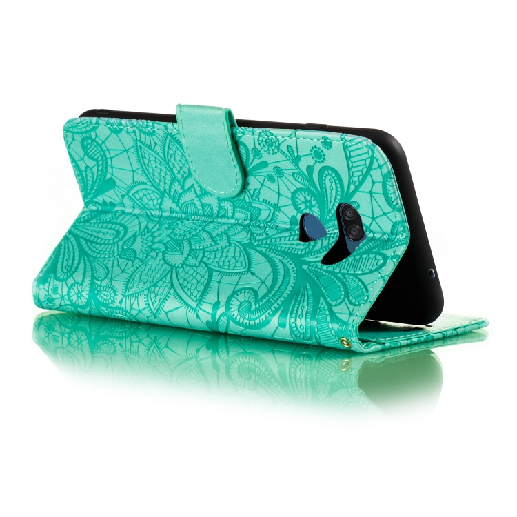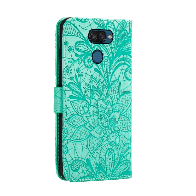 Funda de Cuero para LG K40S con Estampado de Flores, Tapa Horizontal, Soporte, Ranuras y Cordón (Verde)