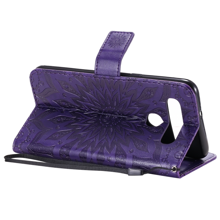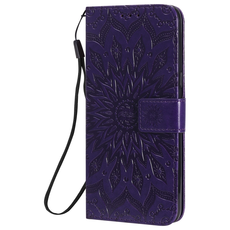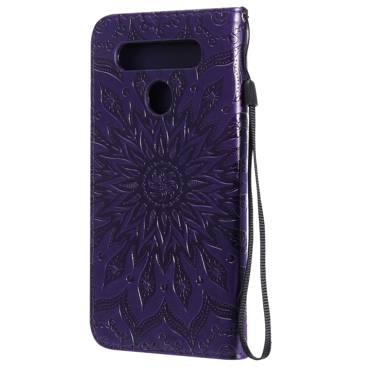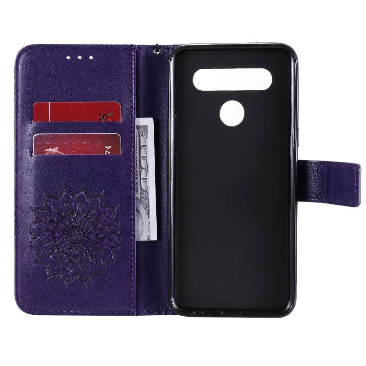 Funda Cuero PU LG K41S y K51S Flip Horizontal Patrón Girasol Soporte Tarjetas Billetera Cordón (Morado)