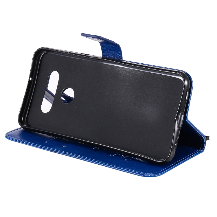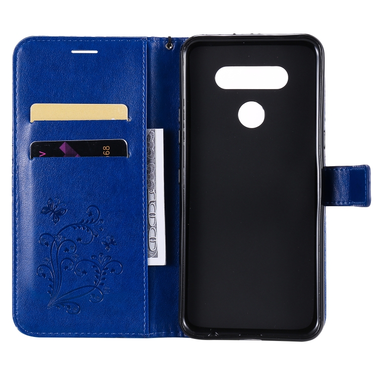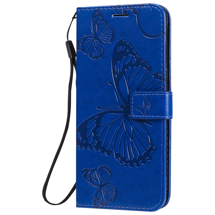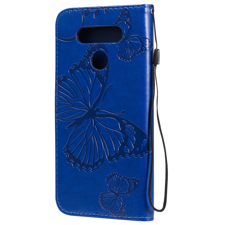 Funda de Cuero para LG K51 con Tapa Horizontal, Patrón Mariposa 3D, Soporte, Ranura Tarjeta, Billetera y Cordón (Azul)