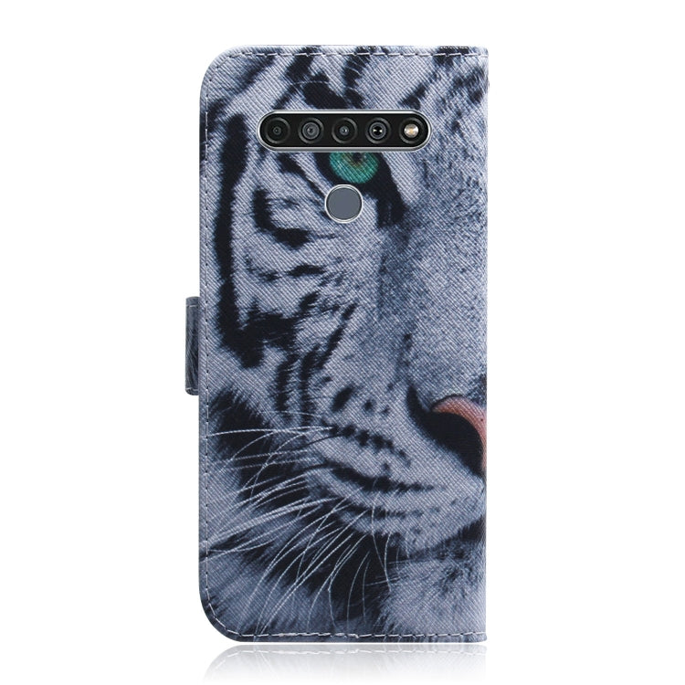 Funda de Cuero Abatible Horizontal para LG K61 con Soporte, Ranuras y Billetera (Tiger)