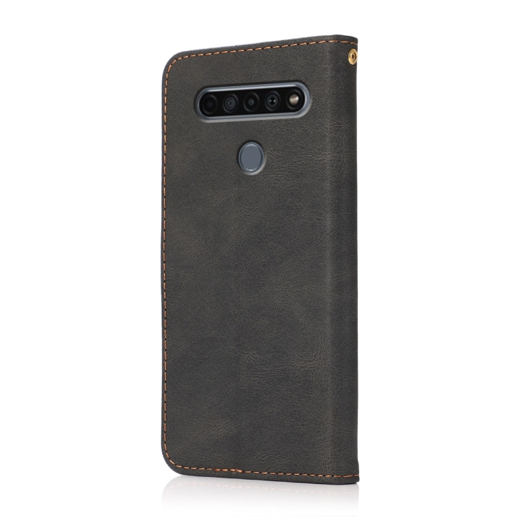 Funda de Cuero para LG K61 con Costuras de Dos Colores (Marrón Negro)