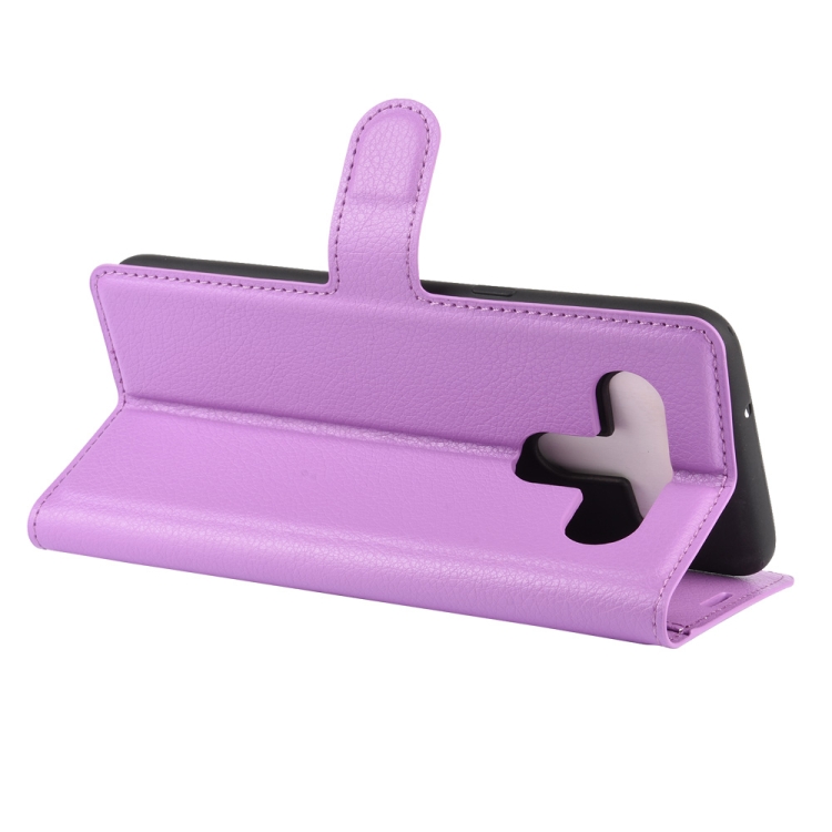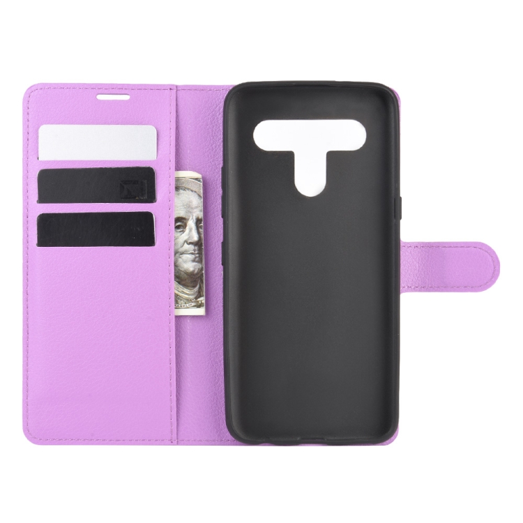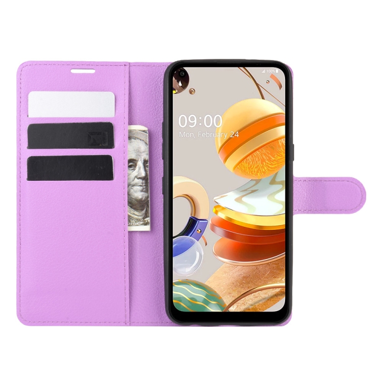 Funda Protectora para LG K61 Litchi Texture con Tapa Horizontal, Soporte, Ranuras para Tarjetas y Billetera (Púrpura)