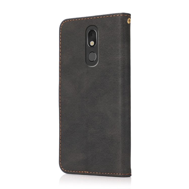 Estuche de Cuero para LG Stylo 5 con Costuras de Dos Colores (Marrón Negro)