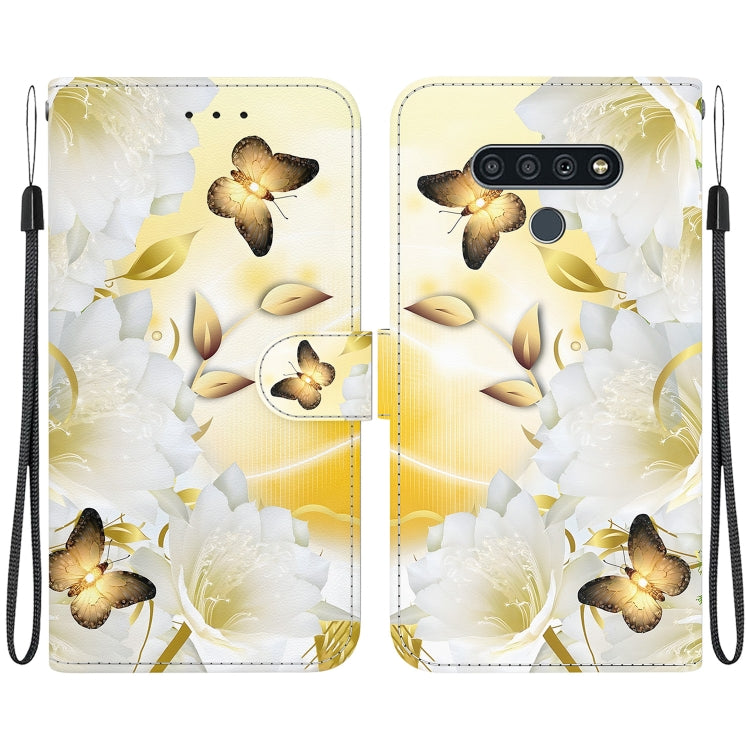 Estuche de Cuero para LG Stylo 6 / K71 con Dibujo Coloreado y Textura de Cristal (Epiphyllum Mariposa Dorada)