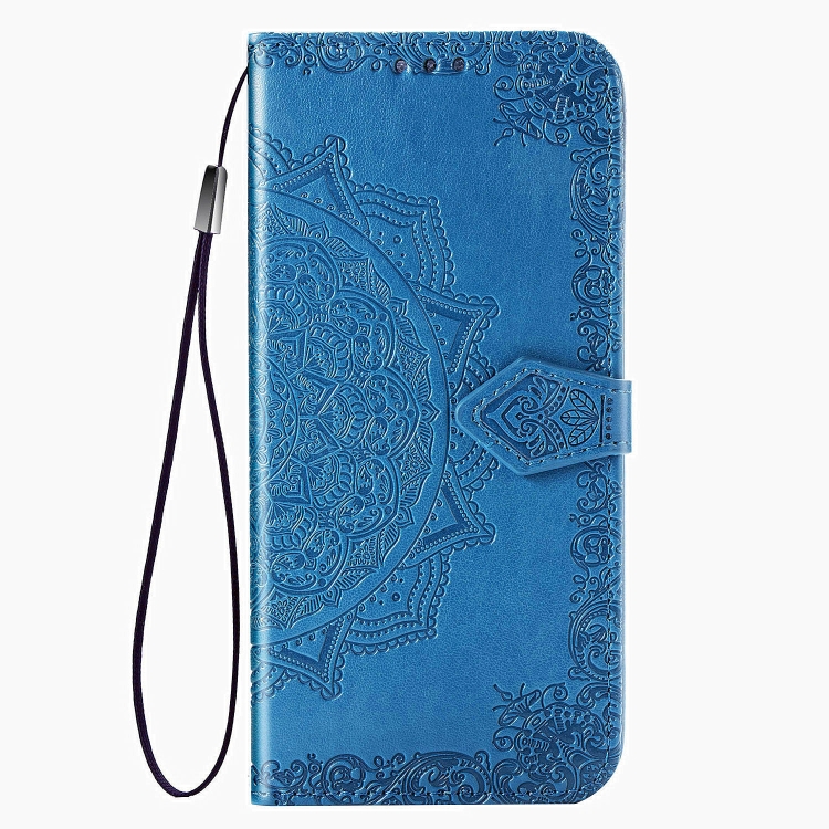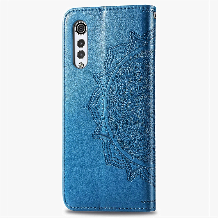 Funda de Cuero para LG Velvet 5G Mandala Flower con Tapa Horizontal, Soporte, Ranura para Tarjeta y Cordón (Azul)
