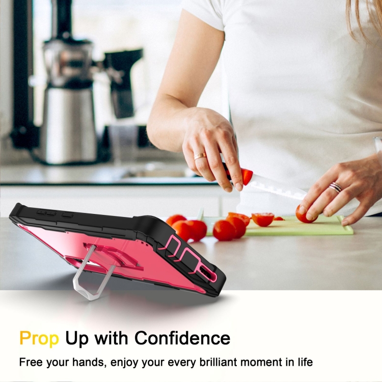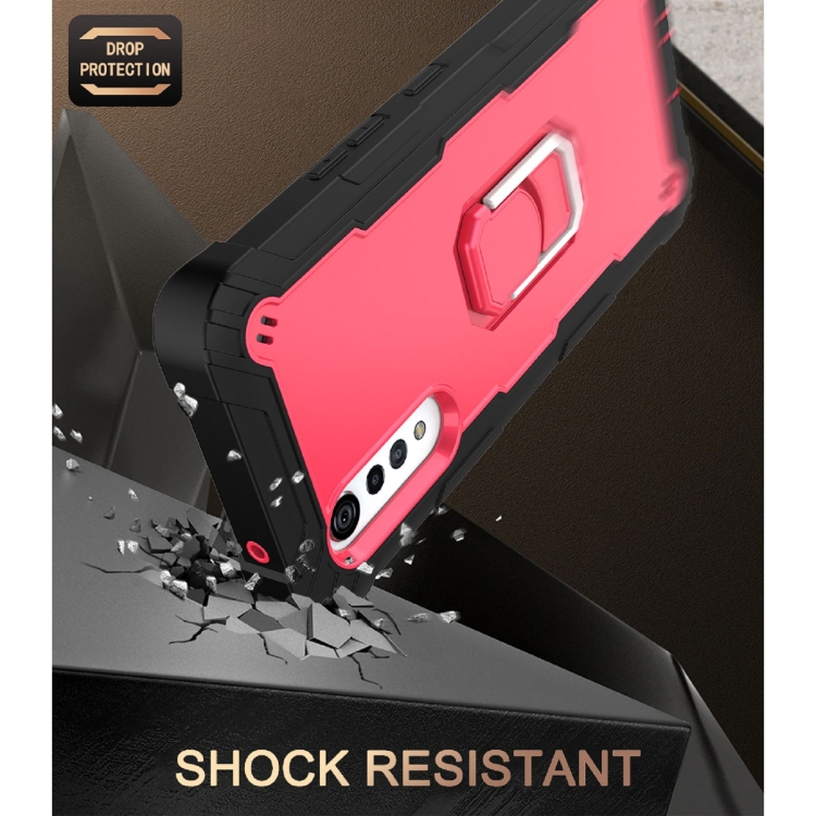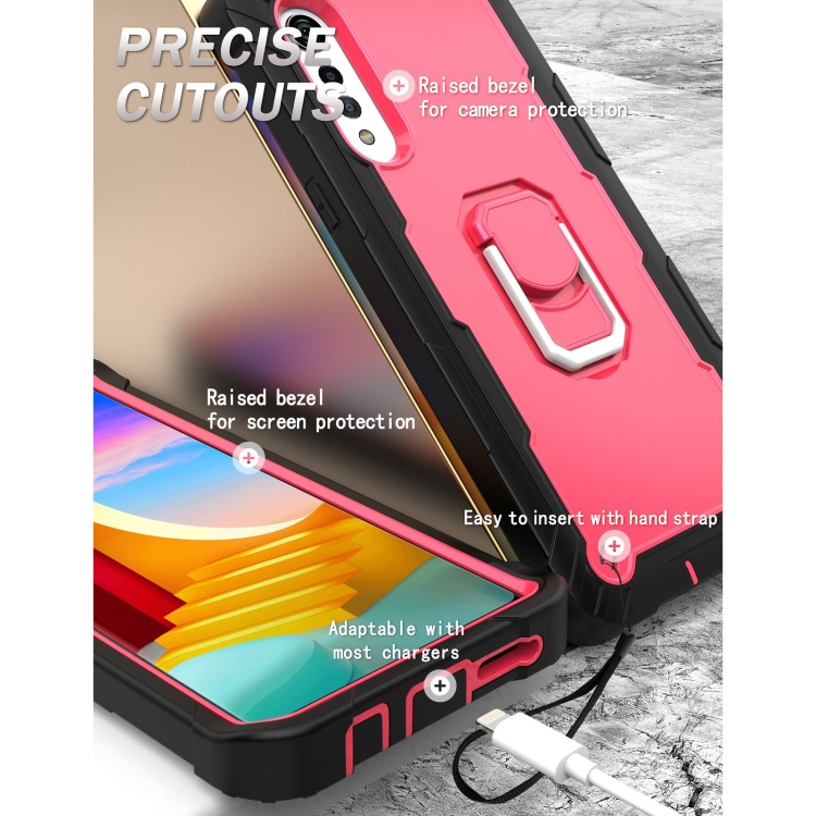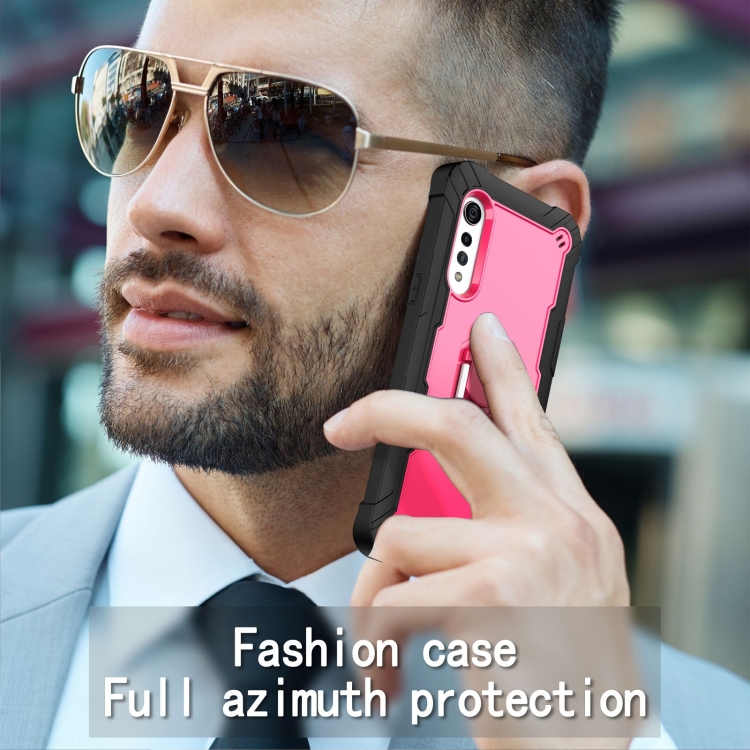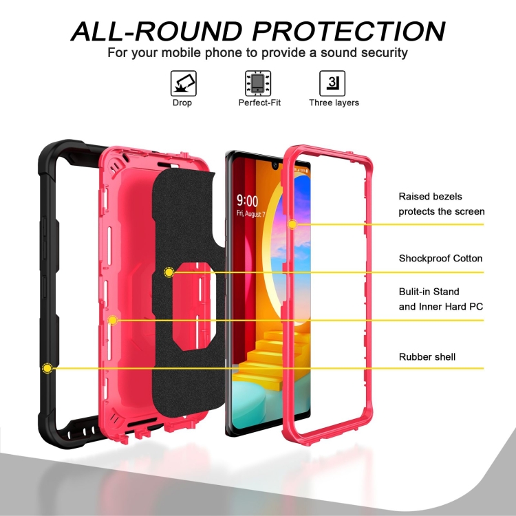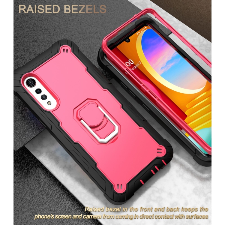 Funda para LG Velvet PC + Caucho a Prueba de Choques con Soporte Giratorio (Negro + Rojo Rosa)