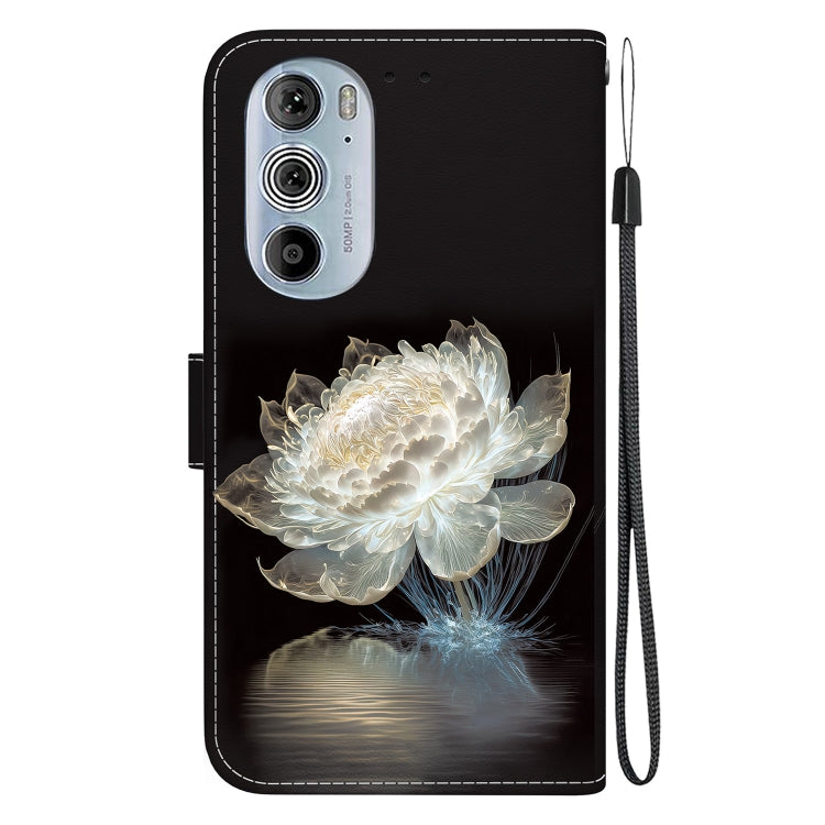 Estuche de Cuero para Motorola Edge + 2022 con Dibujo Coloreado y Textura de Cristal (Peonía de Cristal)