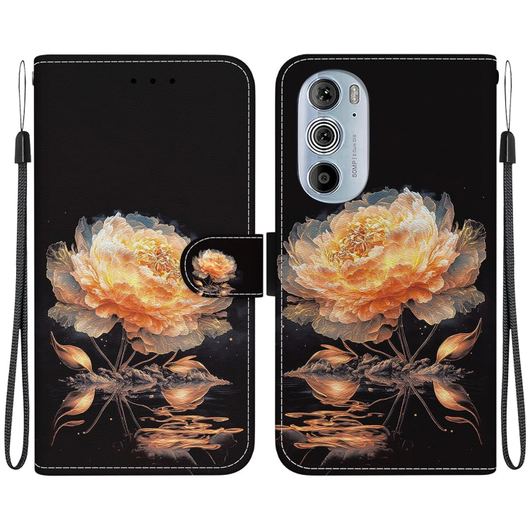 Estuche de Cuero para Motorola Edge + (2022) con Dibujo Coloreado y Textura de Cristal (Peonía Dorada)