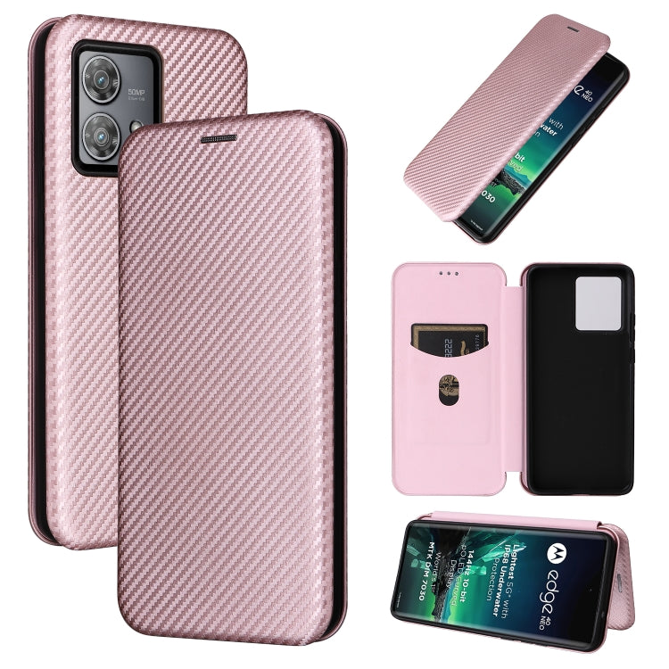 Funda de Cuero con Tapa para Motorola Edge 40 Neo con Textura de Fibra de Carbono (Rosa)