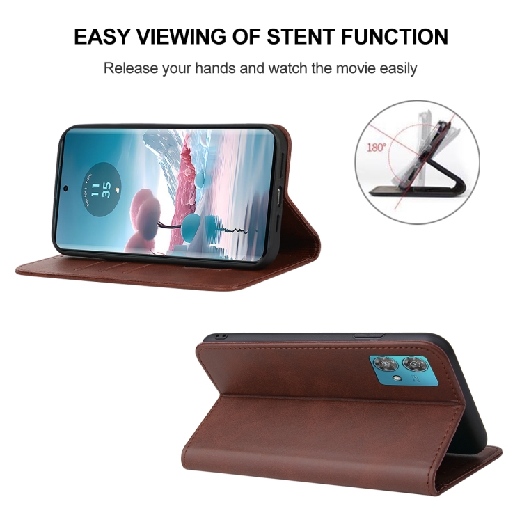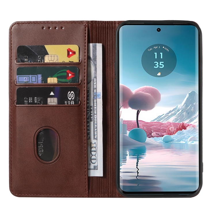 Funda de Cuero para Motorola Edge 40 Neo con Cierre Magnético (Marrón)