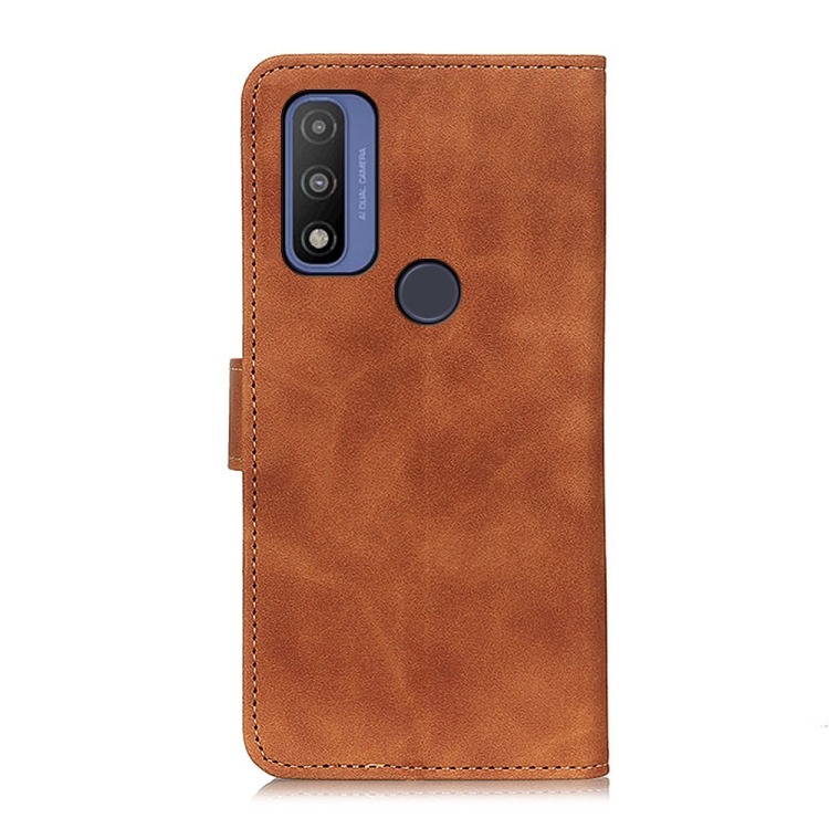 Funda para Motorola G Pure Khazneh Retro Texture PU + TPU Cuero Horizontal con Soporte y Ranuras para Tarjetas (Marrón)