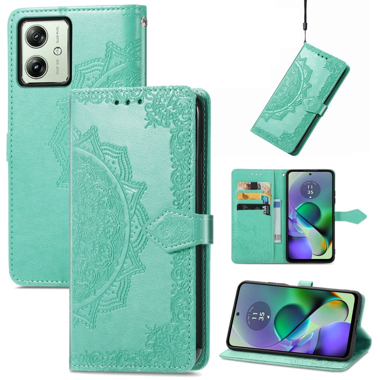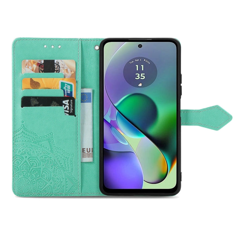 Funda para Motorola G54 5G de Cuero con Relieve de Flor de Mandala (Verde)