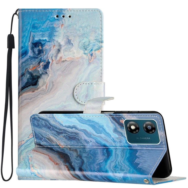 Estuche para Motorola Moto E13 de Cuero con Dibujo Coloreado Mármol Azul
