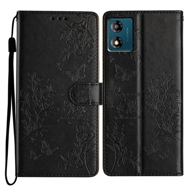 Funda de Cuero para Motorola Moto E13 con Mariposas y Flores (Negro)