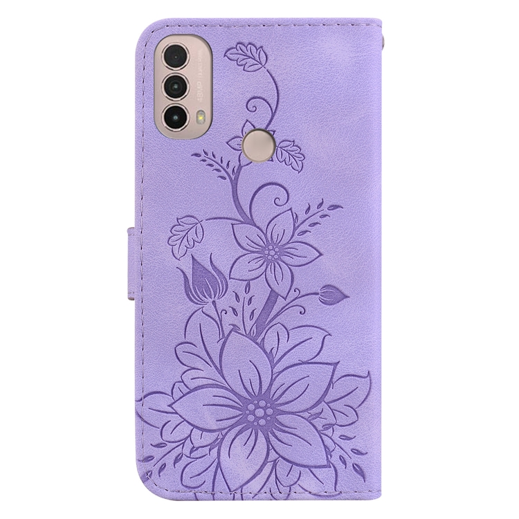 - 1x Funda para Motorola Moto E20 E30 E40 de Cuero con Relieve Lily (Púrpura)